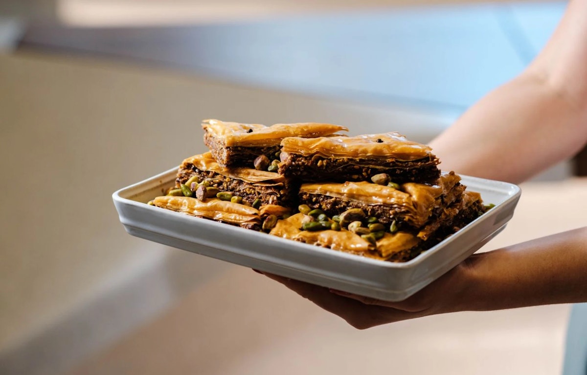 For the perfect add-on, go savory with our citrus dolmas, marinated chickpeas, house-baked pit, or pita chips—or finish with something sweet like our Pistachio-Almond Baklava or a celebratory Metaxa Shot.