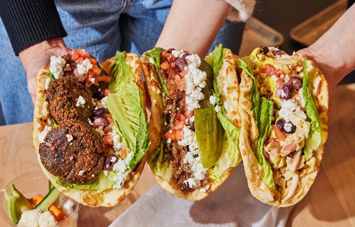 - Bases - Sourdough pita pocket, Greek or grain bowls, or chopped Greek salad with marinated chickpeas and feta