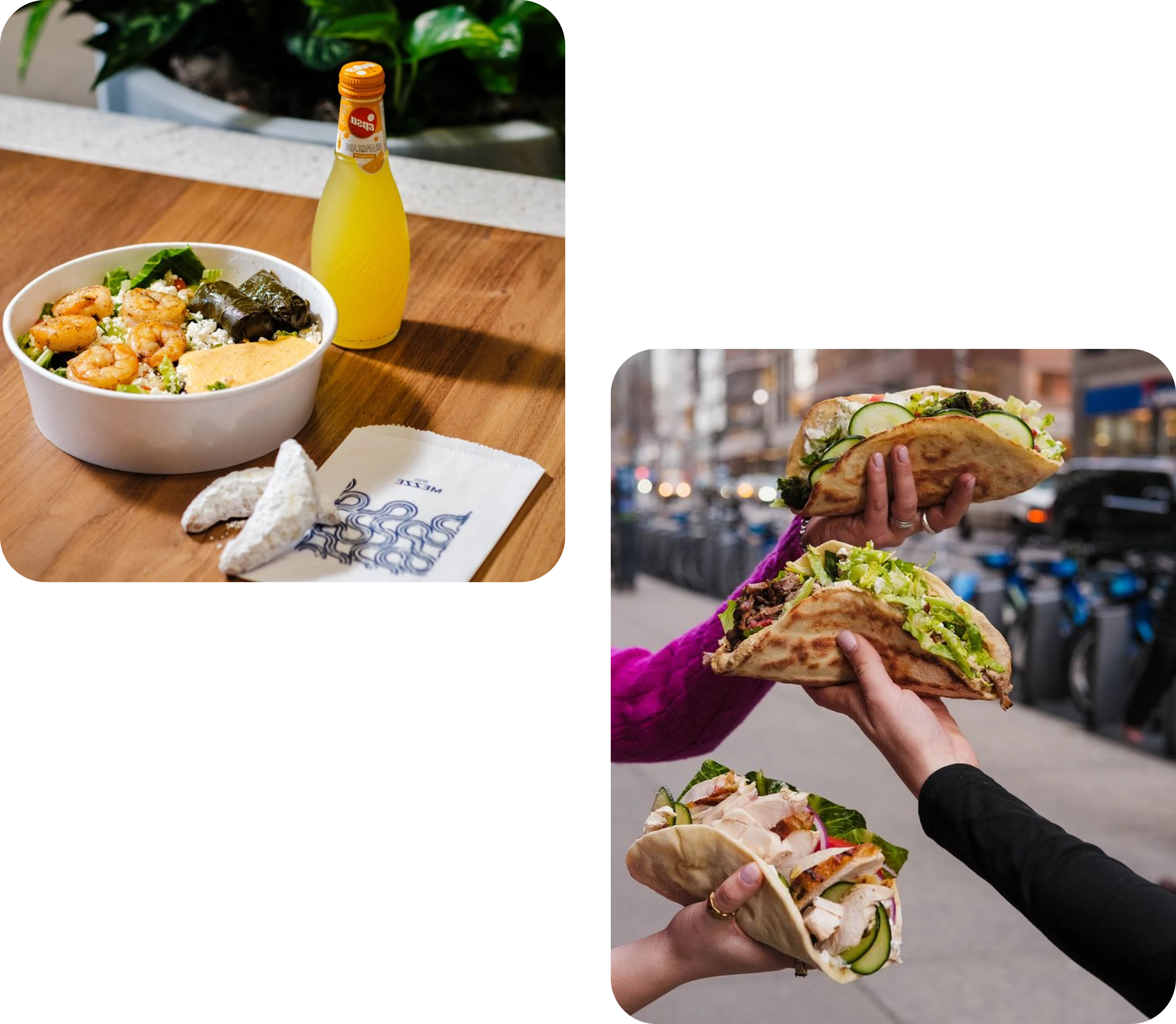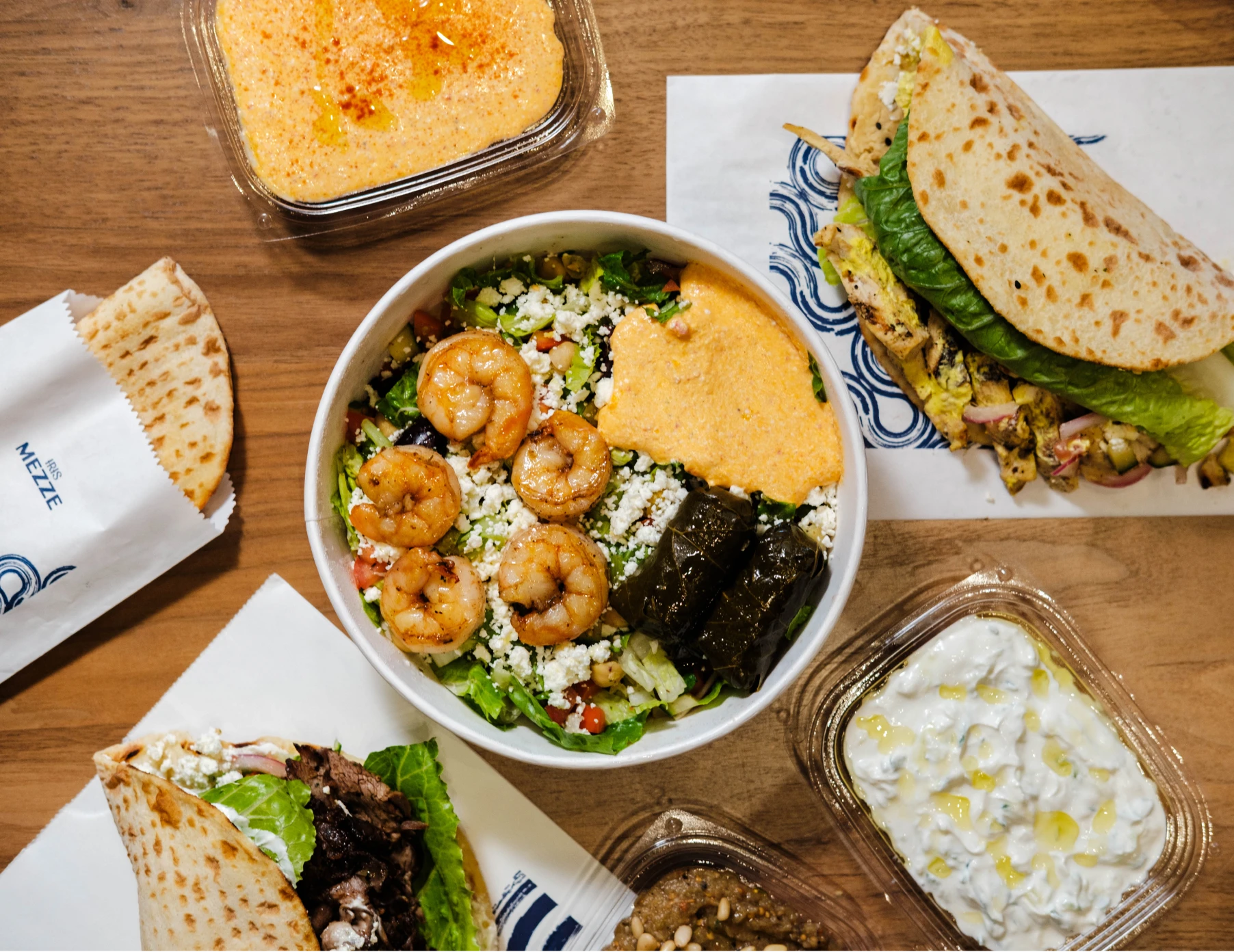 While you’re always welcome to dine in, we know that life can keep you busy. Place an order for pickup or delivery, and we’ll bring fresh Mediterranean flavors to your door. Curious about catering? Reach out to our team to learn more.